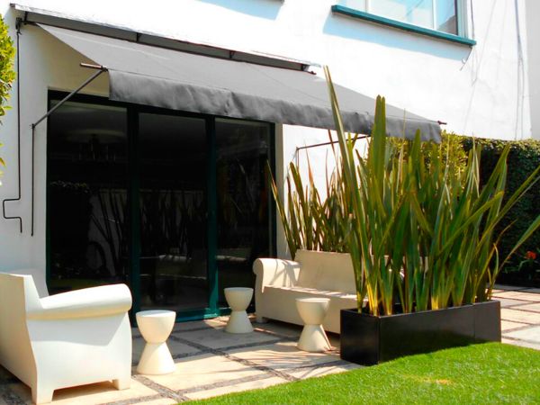 Sistema retractil manual o motorizado que permite abrir y cerrar con brazos de aluminio ocultos. Ideal para dar sombra a espacios donde el sol golpea directamente como lo son ventanas entradas de negocio y terrazas pequeñas.